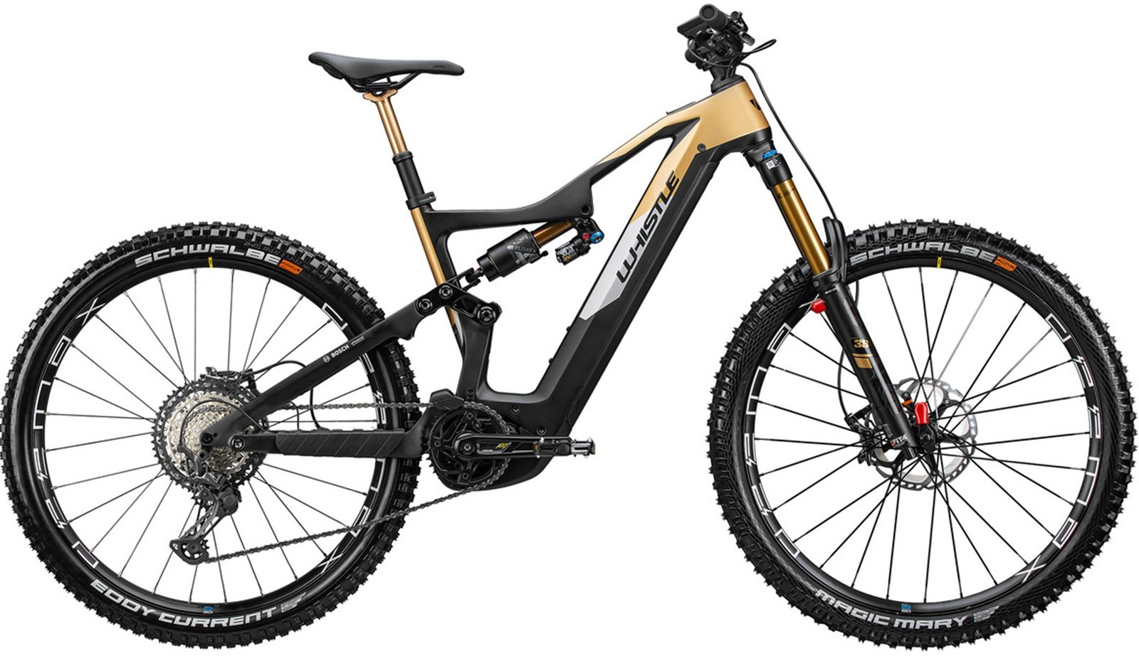 - Opony Schwalbe Magic Mary / Big Betty: Klasyczny zestaw enduro o szerokości 2.6 cala. Miękka mieszanka Addix Soft na przodzie zapewnia pewność w zakrętach, a twardsza z tyłu wydłuża żywotność bieżnika.