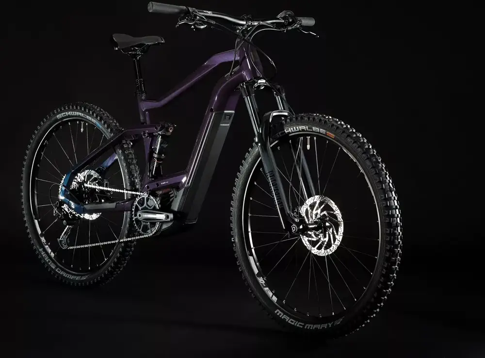 Rower elektryczny trail z pełnym zawieszeniem 29″ z aluminiową ramą i komponentami wyższej średniej klasy.