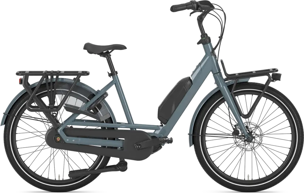 Oversized aluminum frame for extra stability. 68° headset and seat tube angle with super low, spacious entry and a very comfortable sitting position. Lots of space between the saddle and handlebars for a child seat., Color: Grau