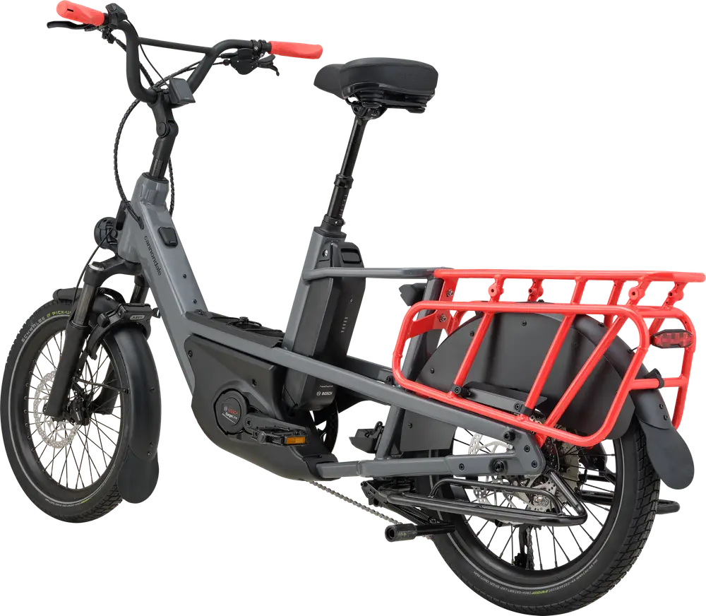SmartForm C2 Alloy step-thru frame, integrated rear cargo rack (80kg), integrated headtube rack mounts, dual battery ready, internal cable routing, disc brake, tapered headtube, center console storage, Color: Grey