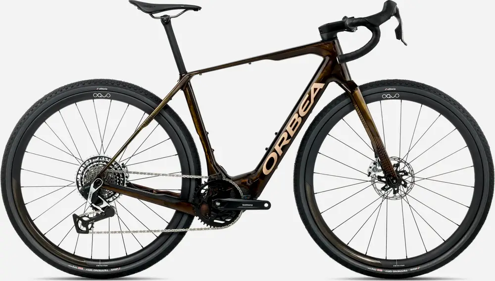 Orbea Denna, Thru Axle 12mm x 142mm rear, thread M12xP1, internal cable routing., Colors: Nickel Matt – Carbon Raw Gloss; Escape Green Gloss – Foggy Matt; Caramel Carbon View – Golden Sand (Gloss); Customizable