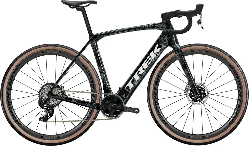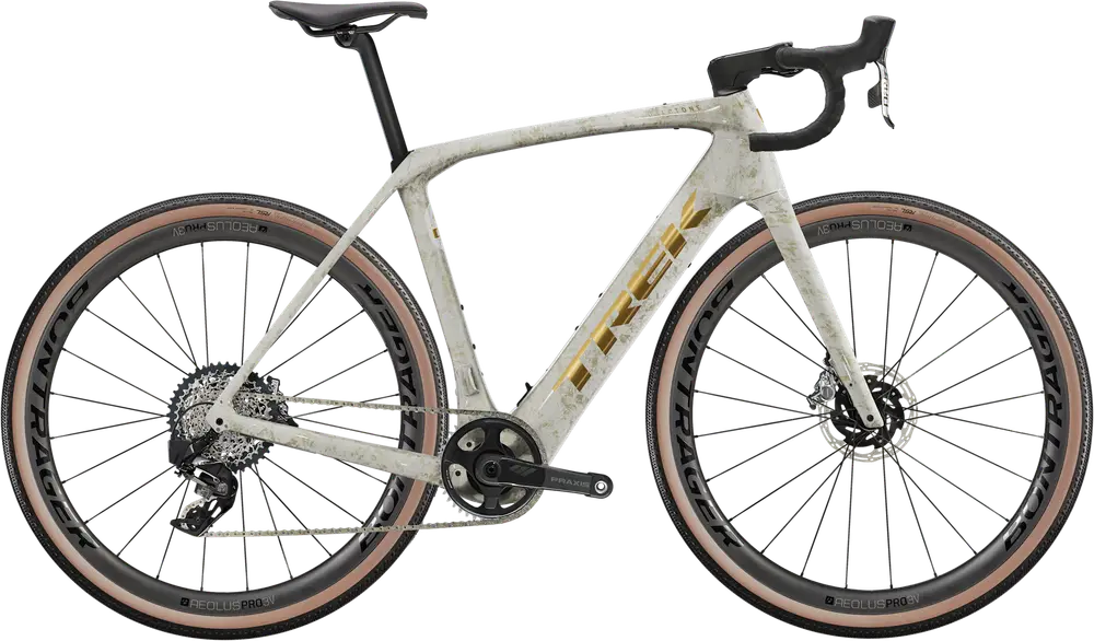 Rower elektryczny typu endurance z ramą karbonową, komponentami z najwyższej półki (ultra high-end) i hydraulicznymi hamulcami tarczowymi SRAM.