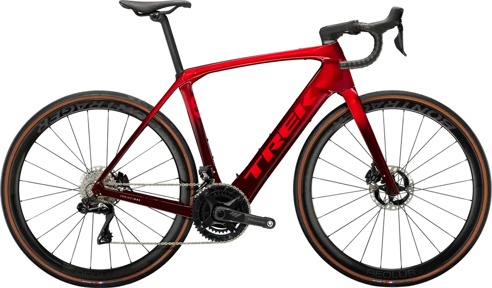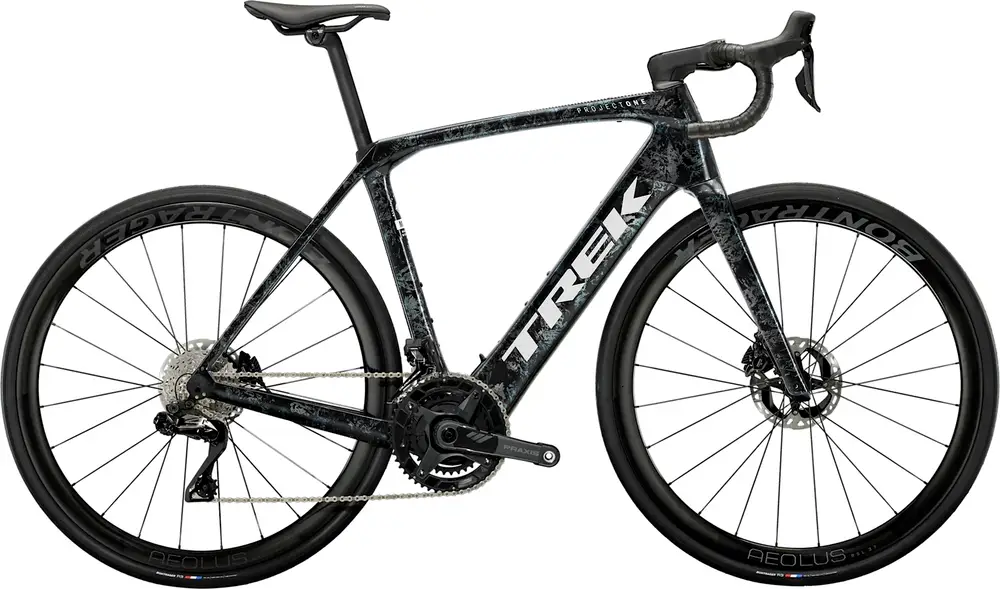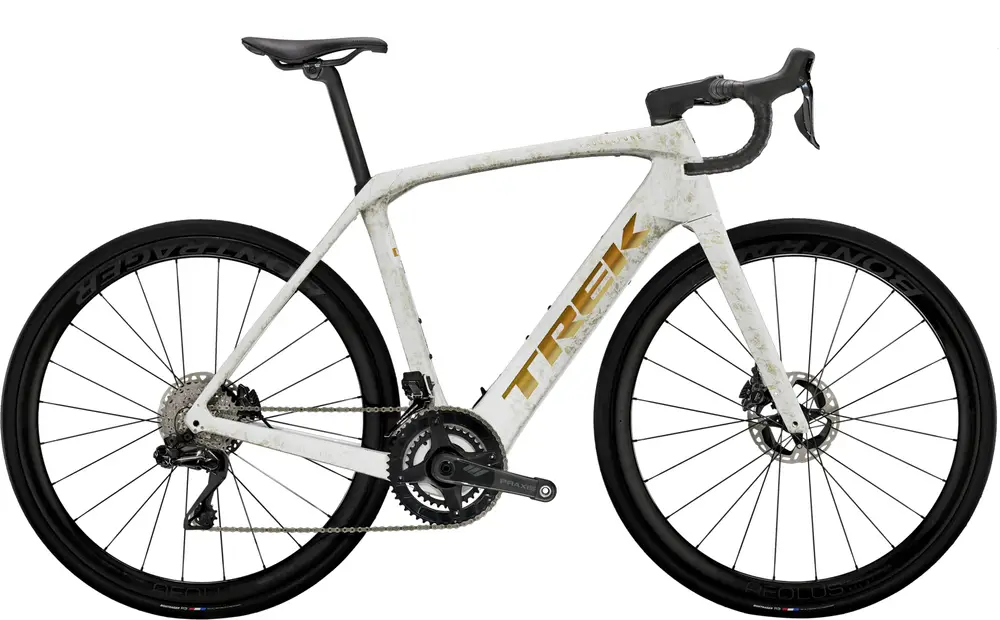 Rower elektryczny typu endurance z ramą karbonową, komponentami z najwyższej półki (ultra high-end) i hydraulicznymi hamulcami tarczowymi Shimano Dura-Ace.