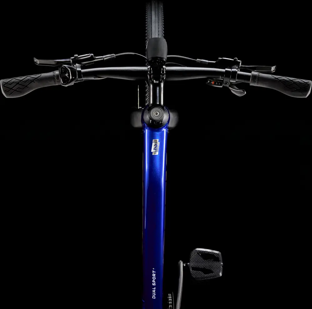 Alpha Gold Aluminium, internal cable routing, internal battery, rack and mudguard mounts, kickstand mount, BB Standard: BSA, Threaded, Colors: Hex Blue; Galactic Grey