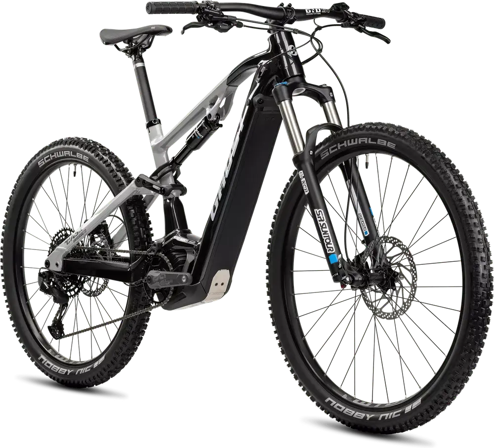Rower elektryczny typu trail z pełnym zawieszeniem, na aluminiowej ramie 27.5″ / 29″, wyposażony w podzespoły ze średniej-wyższej półki.