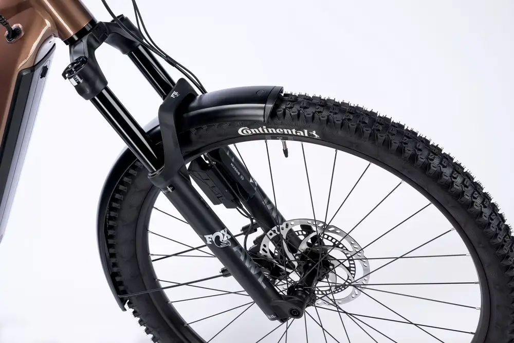 Rower elektryczny enduro z pełnym zawieszeniem, na aluminiowej ramie 29″ / 27.5″, wyposażony w podzespoły ze średniej-wyższej półki.