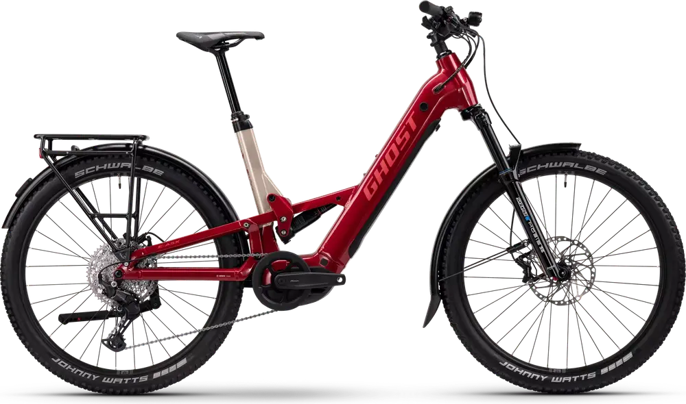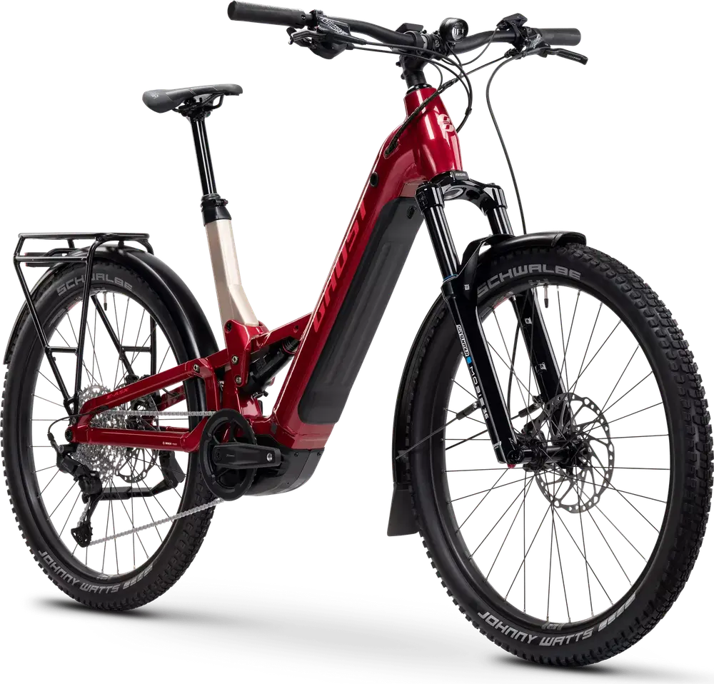 Rower elektryczny typu trail z pełnym zawieszeniem, na aluminiowej ramie 29″ / 27.5″, wyposażony w podzespoły ze średniej półki.
