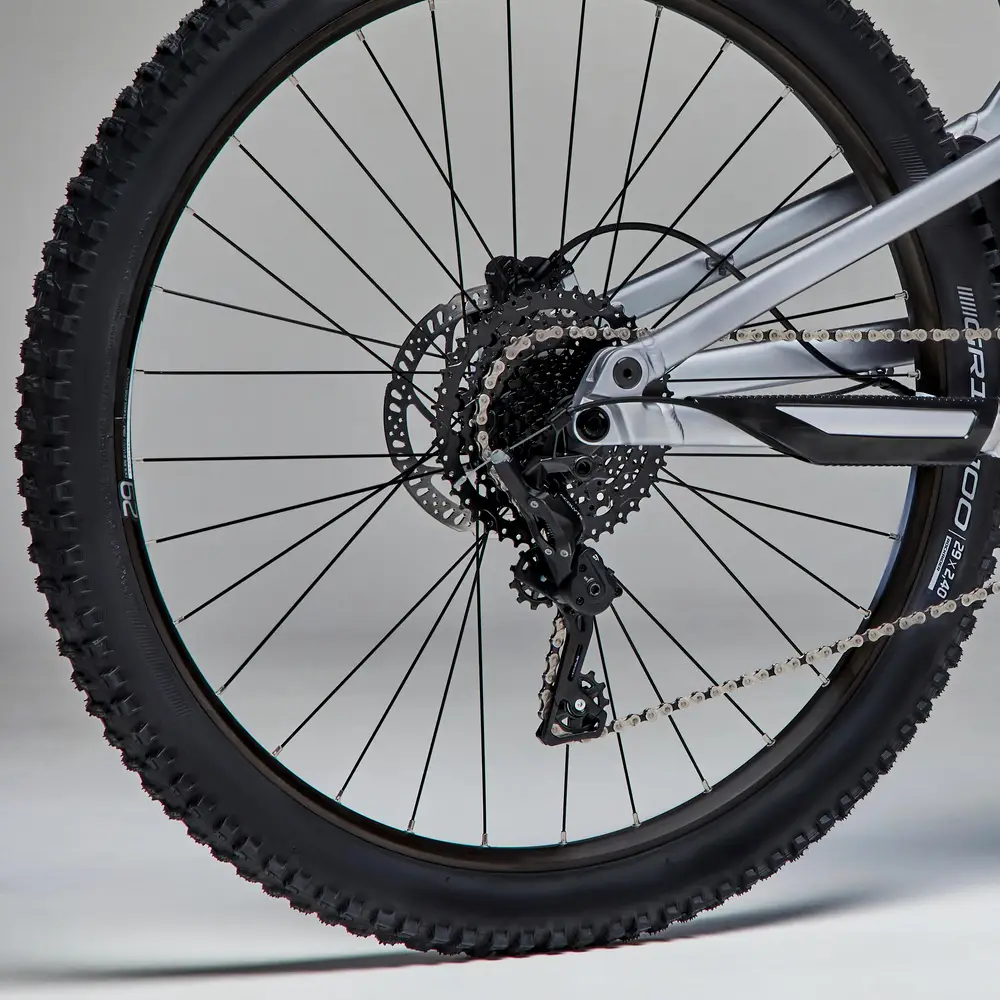 29″ Rockrider wheels Size 29″ compatible with wide tyres: up to 2.6″ 25 mm (width between brackets), 32 spokes Format: Boost Discs: 6-hole Cassette body: HG Tubeless Ready, equipped with a watertight rim base (requires Tubeless tyres, special Presta valves and puncture-proof liquid)