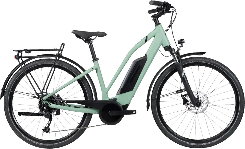 Wygodny e-rower trekkingowy z uniwersalną ramą, który ułatwiał wsiadanie i zsiadanie. Był to idealny wybór do rekreacyjnej jazdy w terenie, łączący terenowe możliwości z maksymalną wygodą.