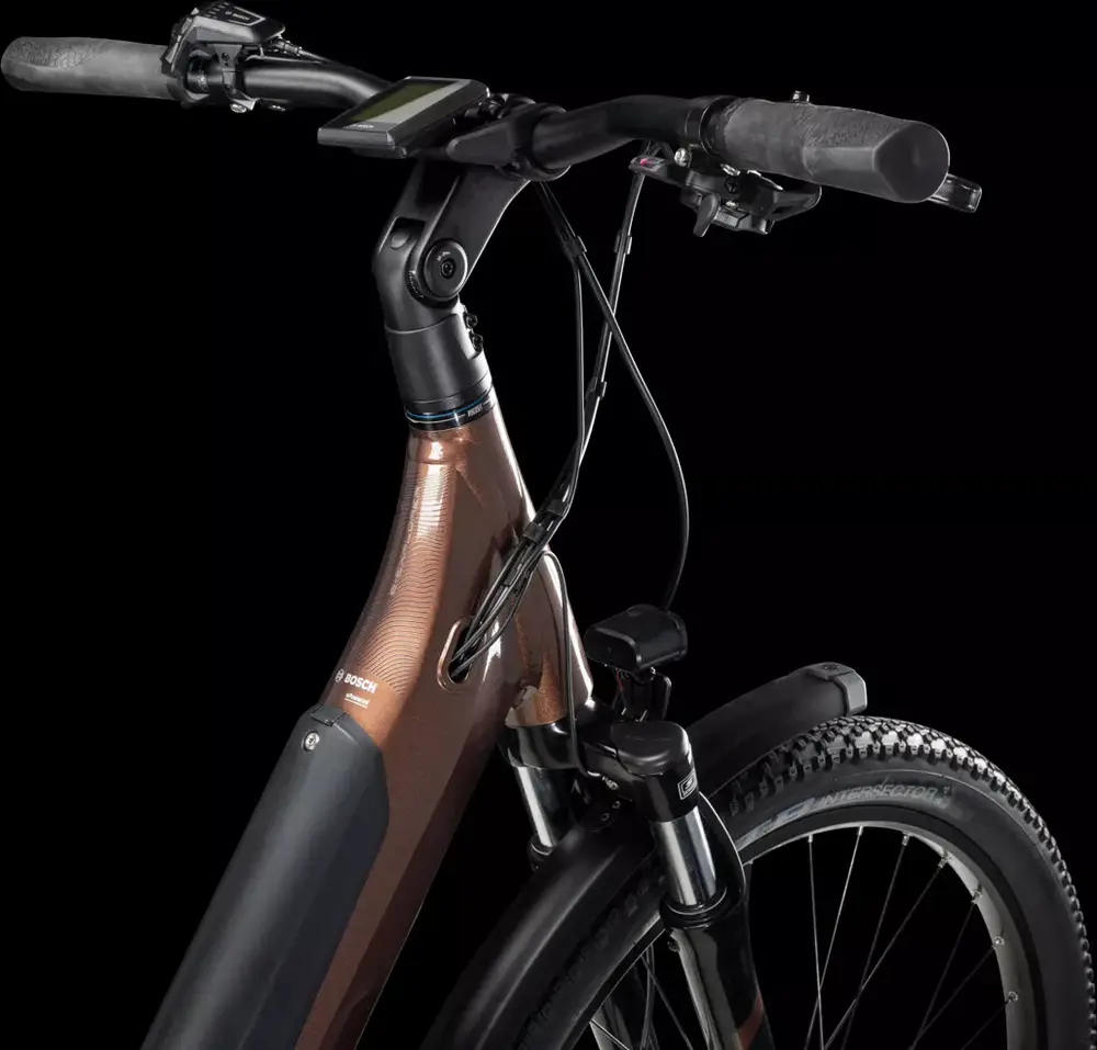 Wszechstronny e-rower trekkingowy z ramą o niskim przekroku, oferujący doskonały balans między ceną, komfortem a jakością. Jest to niezawodny i w pełni wyposażony partner na codzienne dojazdy i rekreacyjne przejażdżki.