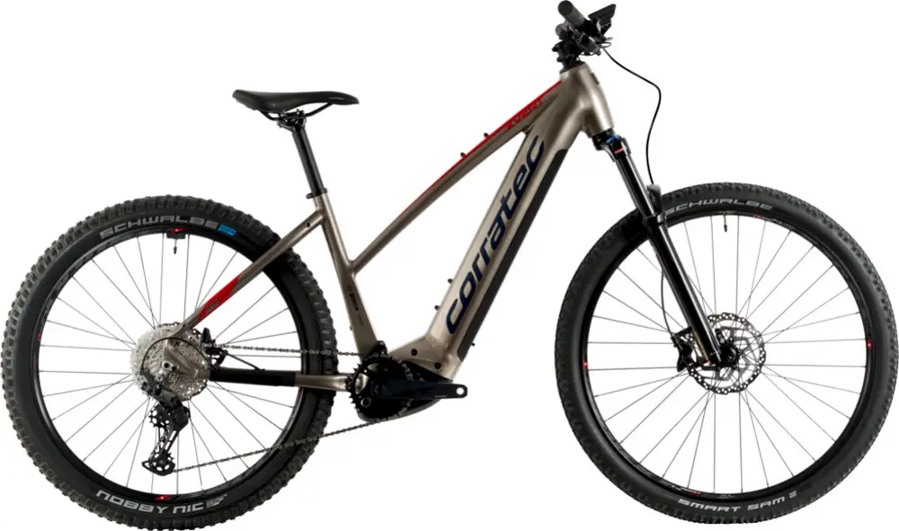 Rower elektryczny górski typu hardtail 29″/27.5″ dla kobiet do jazdy trail z podstawowymi komponentami.