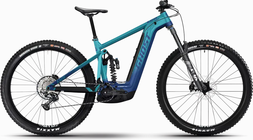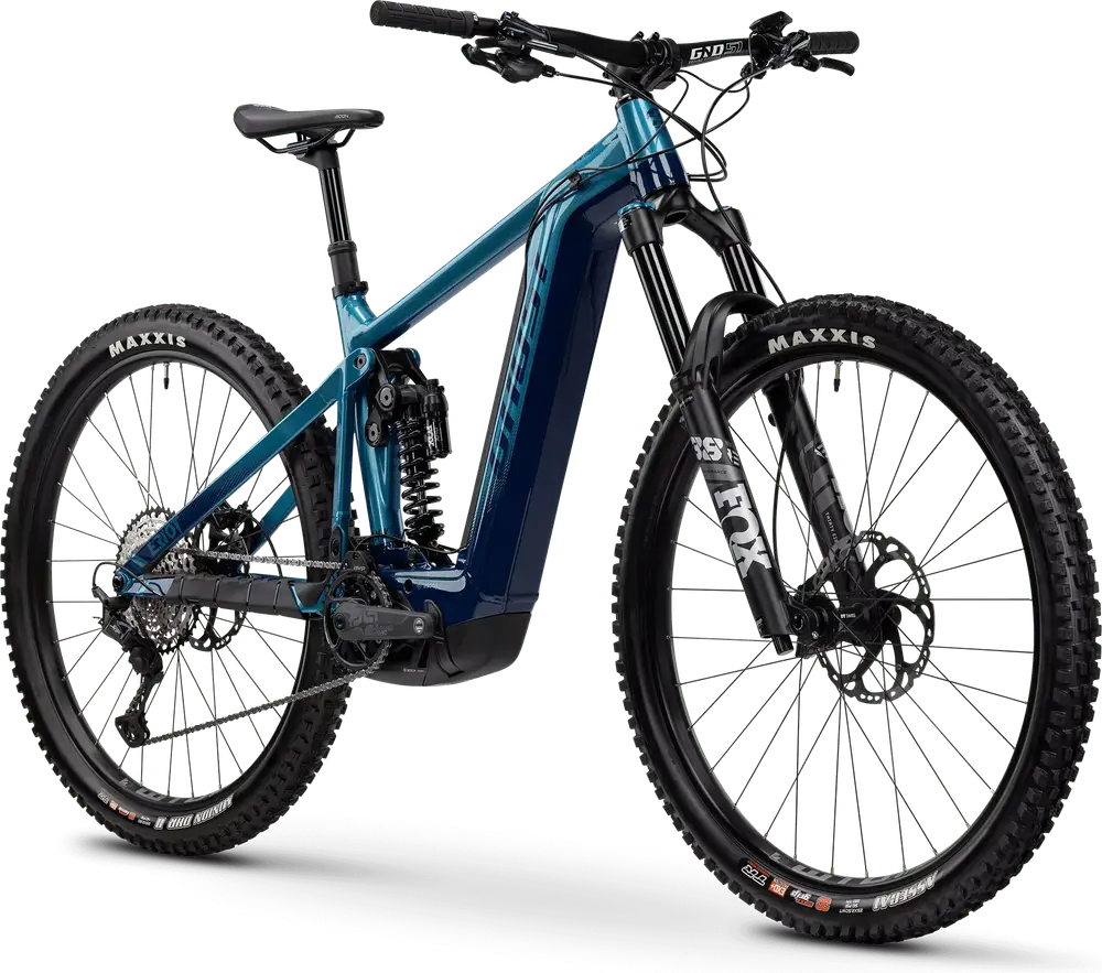 Rower elektryczny enduro z pełnym zawieszeniem, ramą karbonową 29″ i komponentami z wyższej półki średniej klasy.