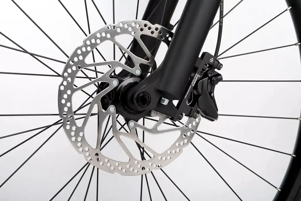 Rower elektryczny do jazdy miejskiej z aluminiową ramą 27.5″ / 29″, komponentami klasy średniej i hydraulicznymi hamulcami tarczowymi Shimano.