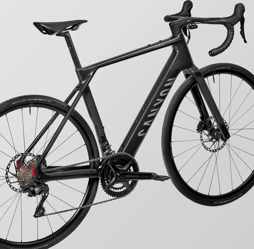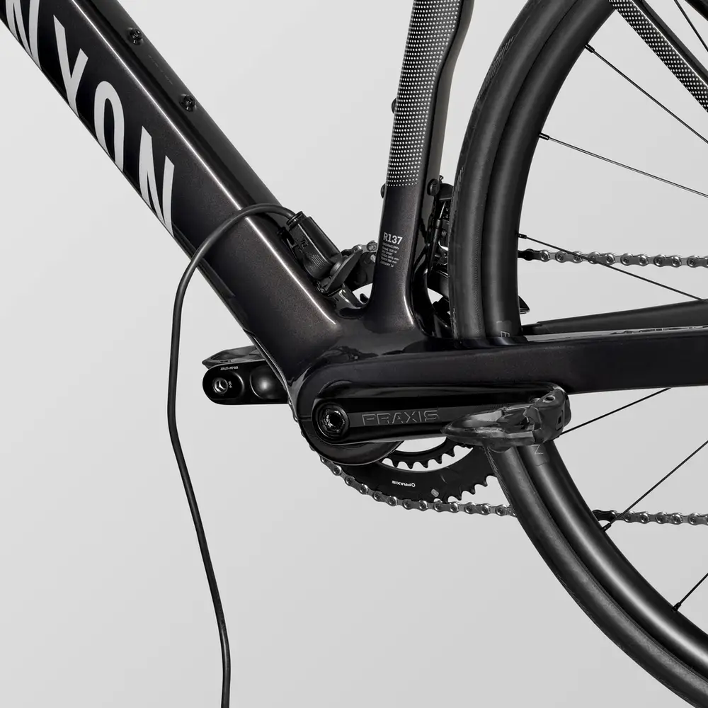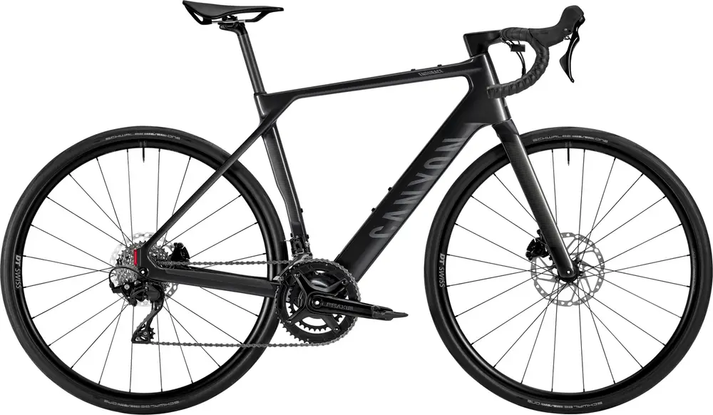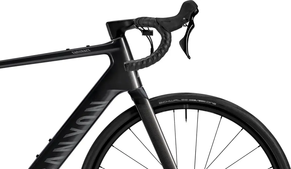 Canyon Endurace:ONfly CF, Lightweight, strong carbon e-road frame. With a relaxed endurance riding position for all-day comfort, and slacker angles for control with still snappy road bike handling., Axle dimension: 12×142 mm, Tyre clearance: 35 mm, Material: Carbon (CF), Weight: 1,350 g, Tire Clearance: 35c, Color: Stealth1379_85e6ee-94> |