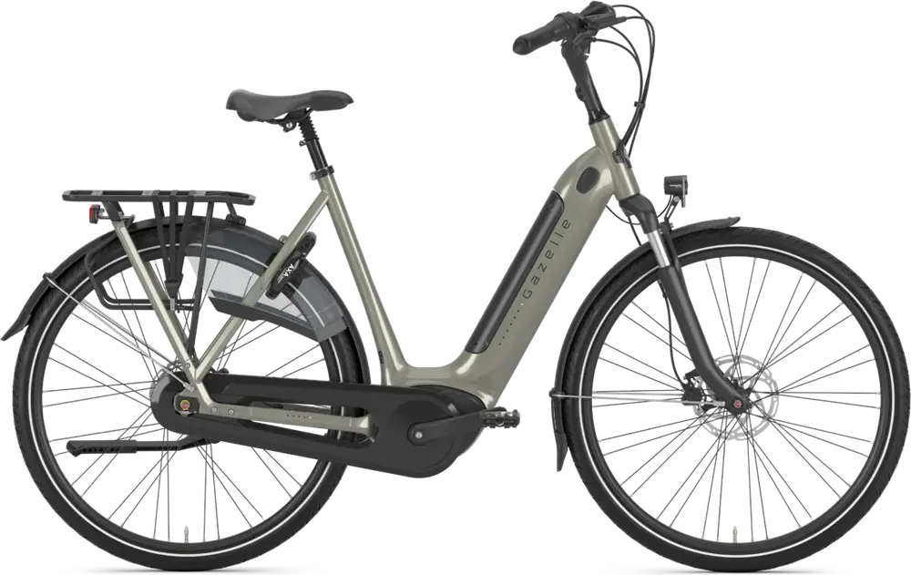 Stable, lightweight oversized aluminum frame with 68.5° head angle and 69.5° seat angle geometry for a smooth and comfortable ride. Low-step model with very low, wide entry and internal cable routing., Colors: Grau; Grün1379_85e6ee-94> |