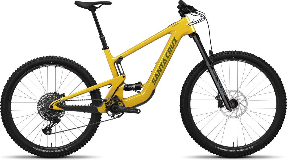 Front: Schwalbe Albert, 29×2.5, Trail Radial Ultra Soft, Rear: Schwalbe Albert, 27.5×2.5, Trail Radial Soft