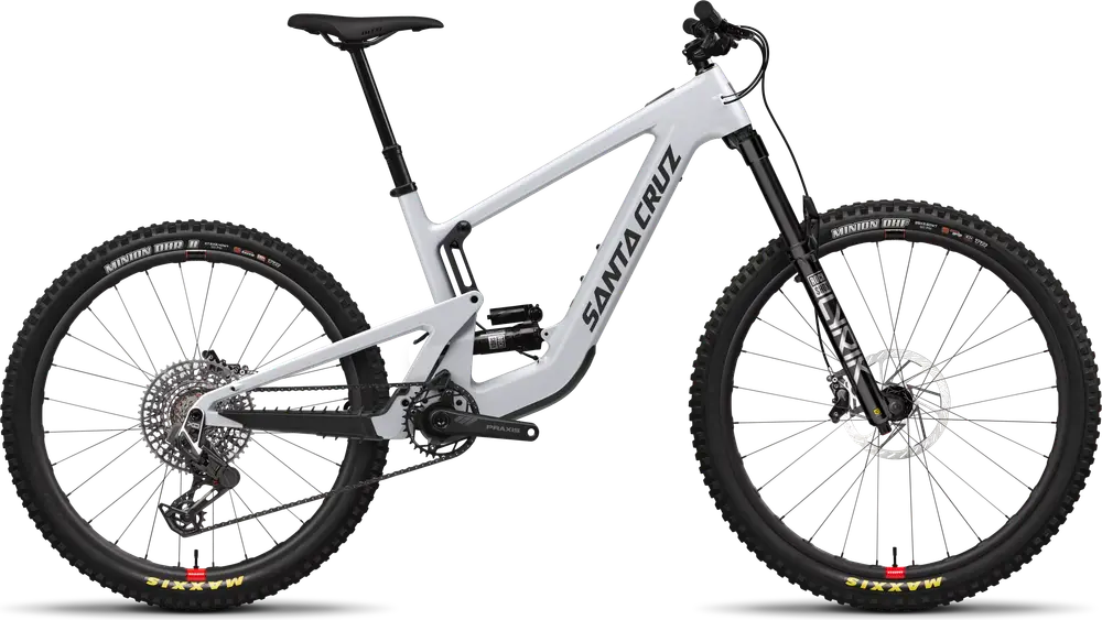 Front: Maxxis Minion DHF 29″x2.5″WT, 3C MaxxGrip, EXO, Rear: Maxxis Minion DHR II 27.5″x2.4″, 3C MaxxTerra, EXO+