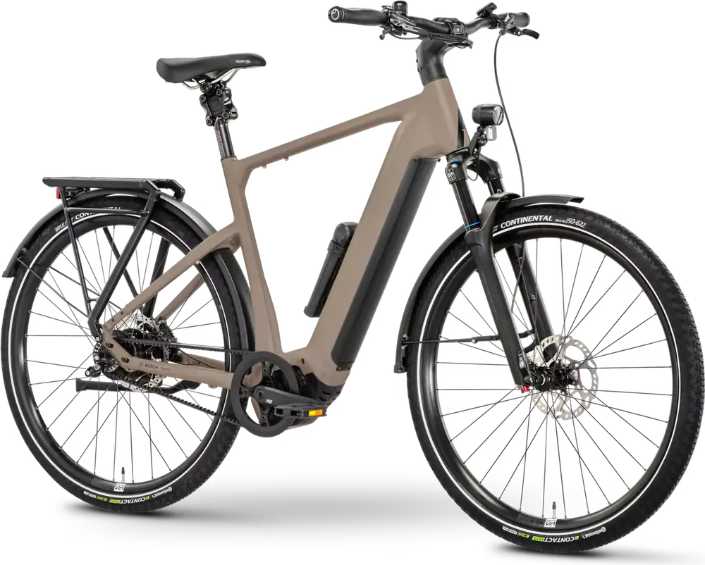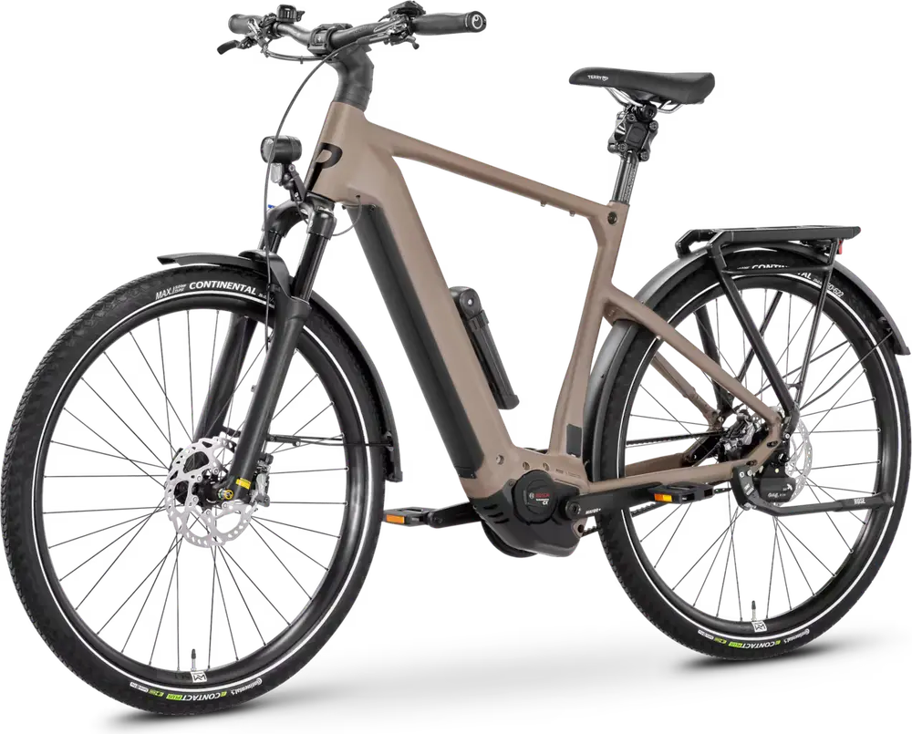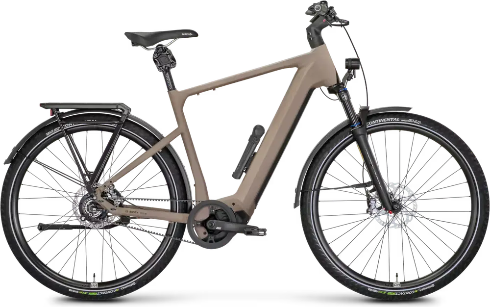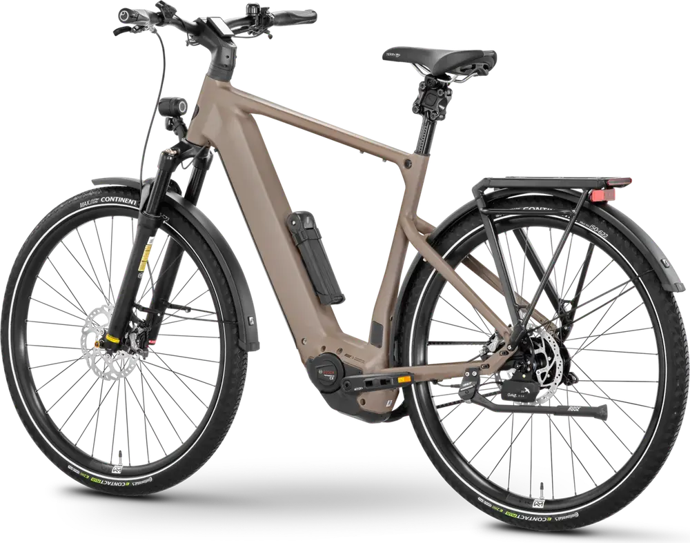 Flagowy e-rower trekkingowy z męską ramą, wyposażony w najlepsze dostępne technologie i komponenty. To bezkompromisowa maszyna na najdłuższe wyprawy, oferująca maksymalną moc, komfort i prestiż.