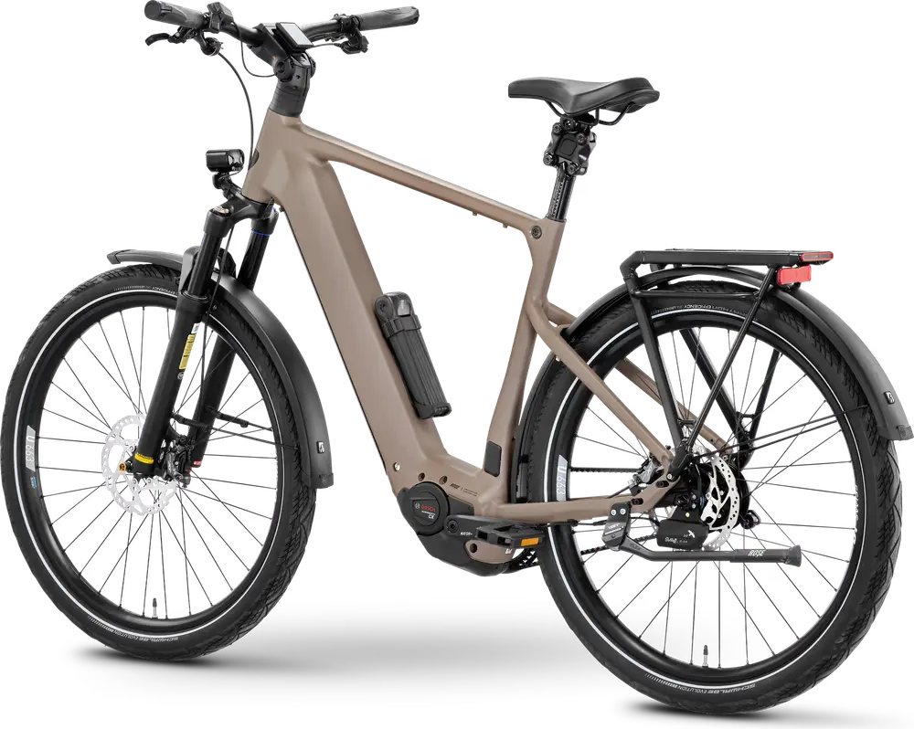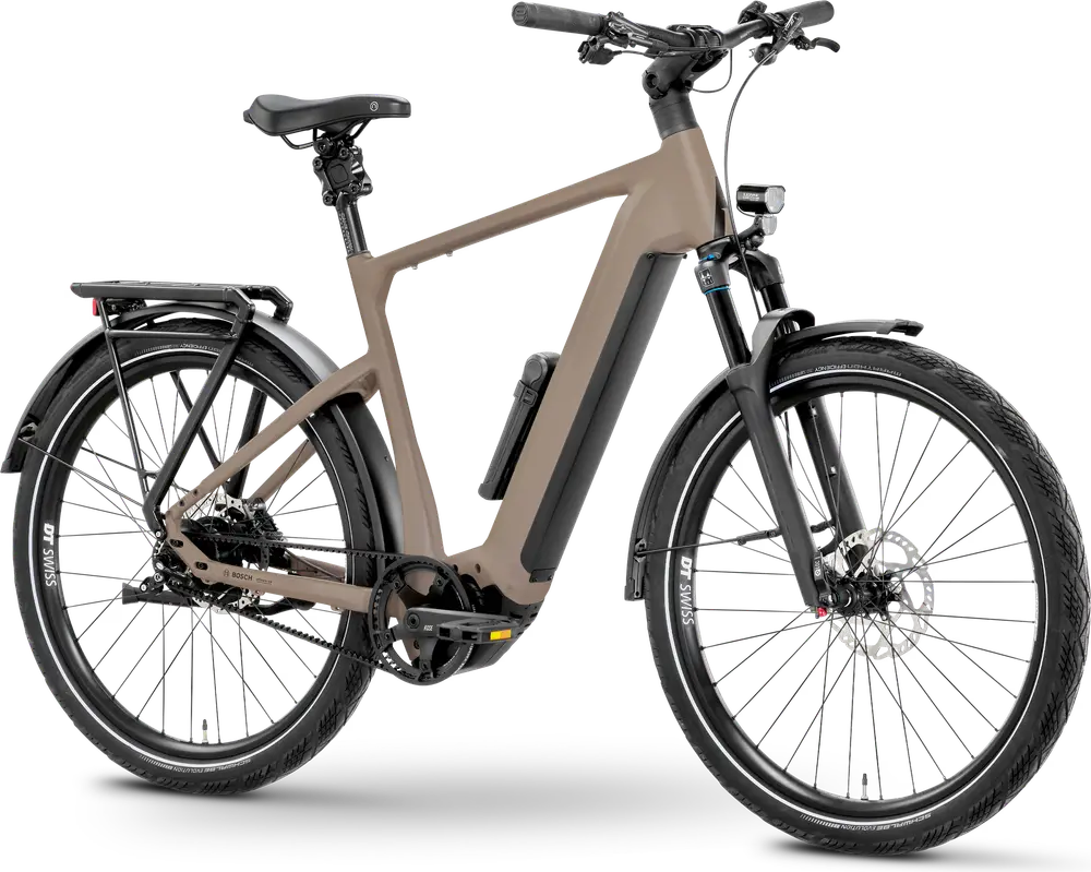 Flagowy e-rower trekkingowy z męską ramą, wyposażony w najlepsze dostępne technologie i komponenty. To bezkompromisowa maszyna na najdłuższe wyprawy, oferująca maksymalną moc, komfort i prestiż.