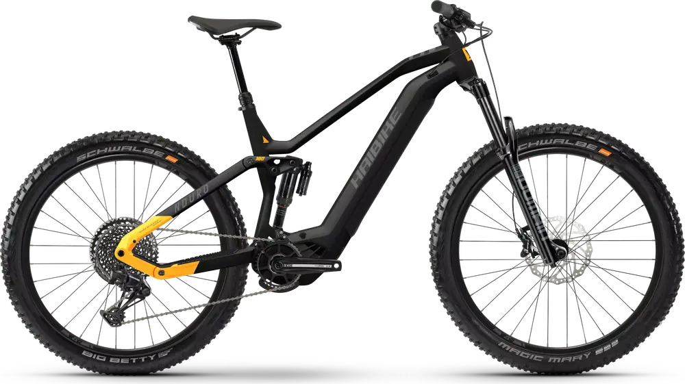 Rower elektryczny enduro 29″ z aluminiową ramą, pełnym zawieszeniem i komponentami wyższej klasy średniej.