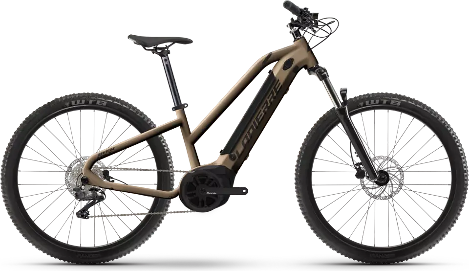 Damski rower elektryczny trail typu hardtail z aluminiową ramą 27.5″ i komponentami wyższej klasy średniej.
