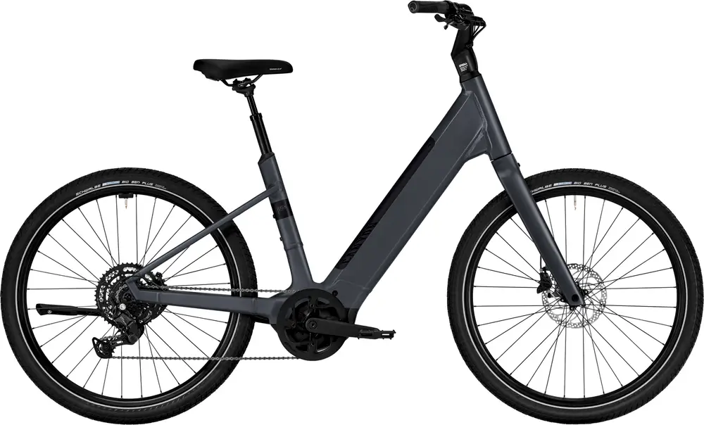 Komfortowy rower miejski z aluminiową ramą typu step-through, ułatwiającą wsiadanie i zsiadanie. Wyposażony w silnik Bosch Performance Line i baterię 500 Wh, idealny do codziennych dojazdów i rekreacyjnych przejażdżek po mieście.