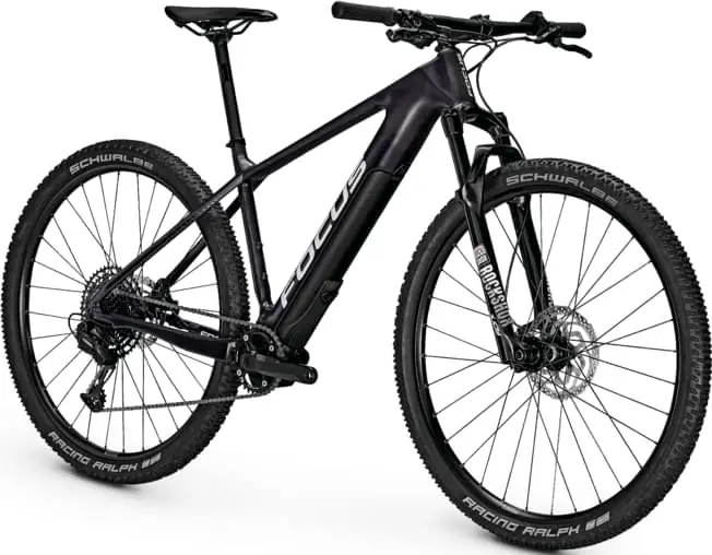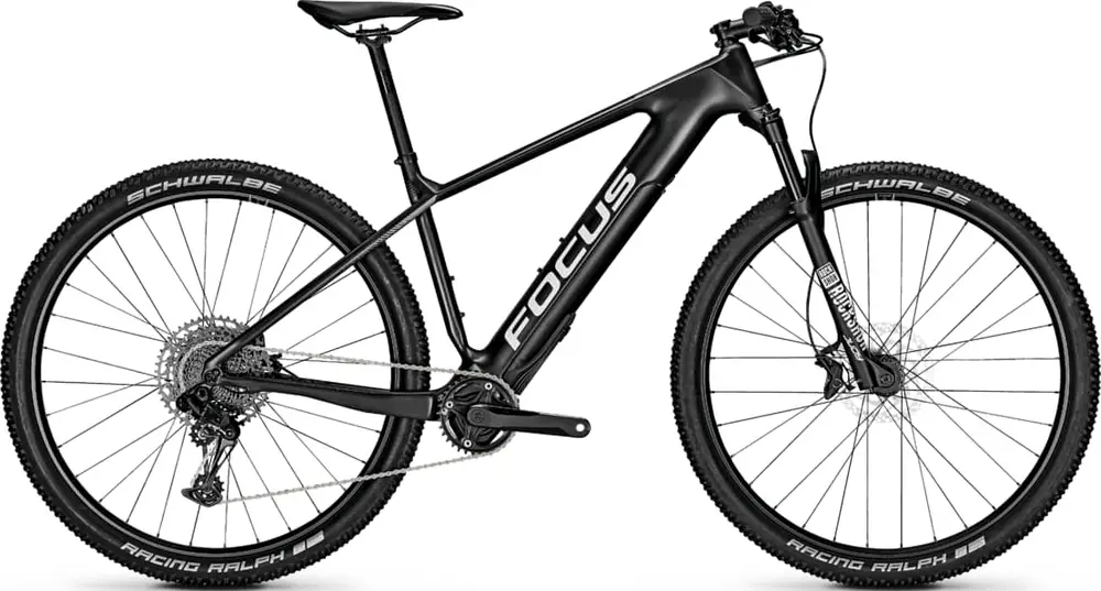 Rower elektryczny cross-country typu hardtail z karbonową ramą 29″ i osprzętem wyższej średniej półki.