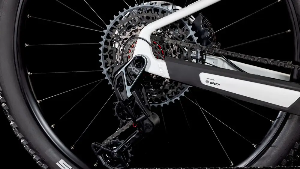 Aluminum Superlite, Gravity Casting Technology, Agile Ride Geometry, Boost 148, UDH™, Full Integrated Battery, Advanced Internal Cable Routing, Kickstand/Fender/Carrier Mounting Points, Integrated Seatclamp, Hanger Standard: UDH, Color: Metallicwhite’n’black