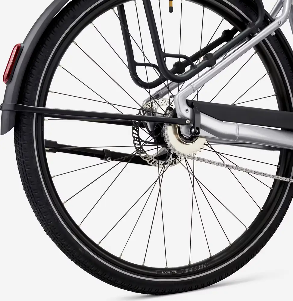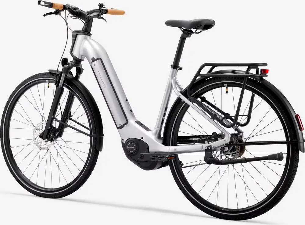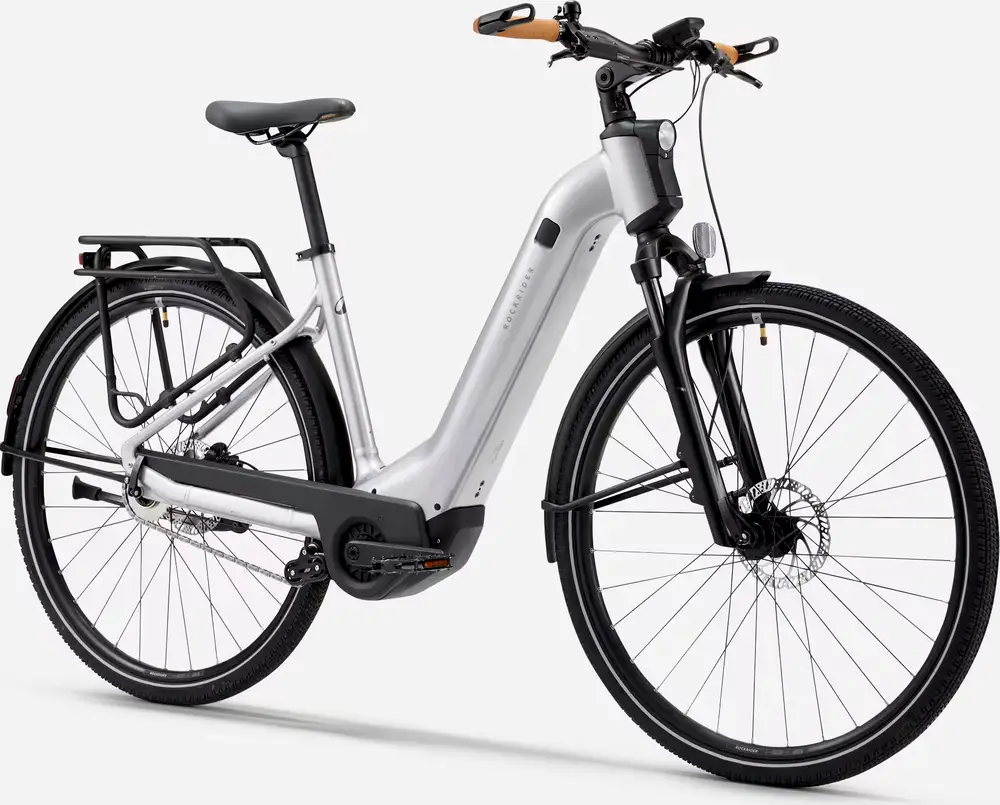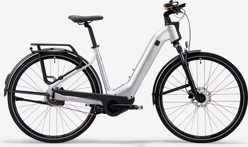 Frame made of 6061 aluminum. Rockrider Carry suspension fork. Damping: Spring. Fork steerer: Steel, with varying wall thickness, 1 1/8 inch. Travel: 60 mm. Stanchion: Aluminum.