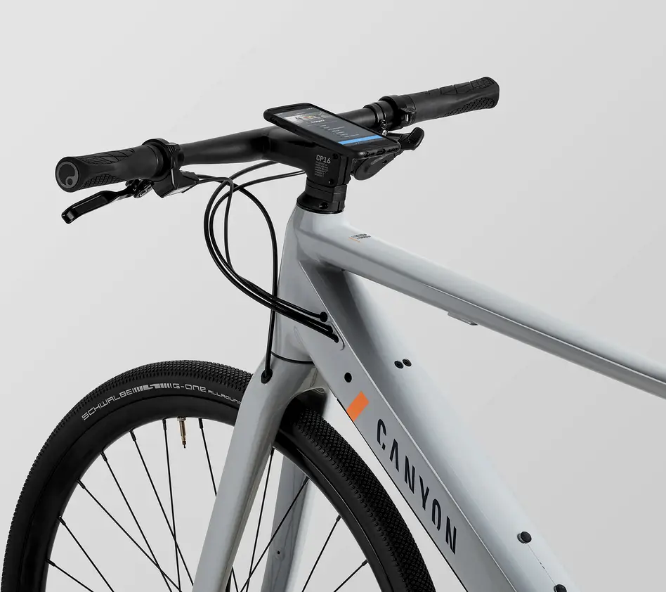 Canyon Roadlite:ON, Robust alunimium e-hybrid frame combining a minimalist design with smooth e-bike power., Axle dimension: 12×142 mm, Material: Aluminium (AL), Color: Light Grey1379_85e6ee-94> |