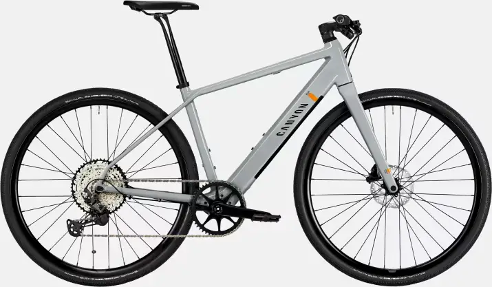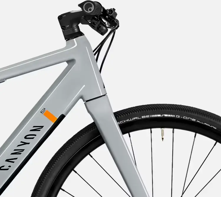 Canyon Roadlite:ON, Robust alunimium e-hybrid frame combining a minimalist design with smooth e-bike power., Axle dimension: 12×142 mm, Material: Aluminium (AL), Weight: 2,244 g, Color: Light Grey1379_85e6ee-94> |