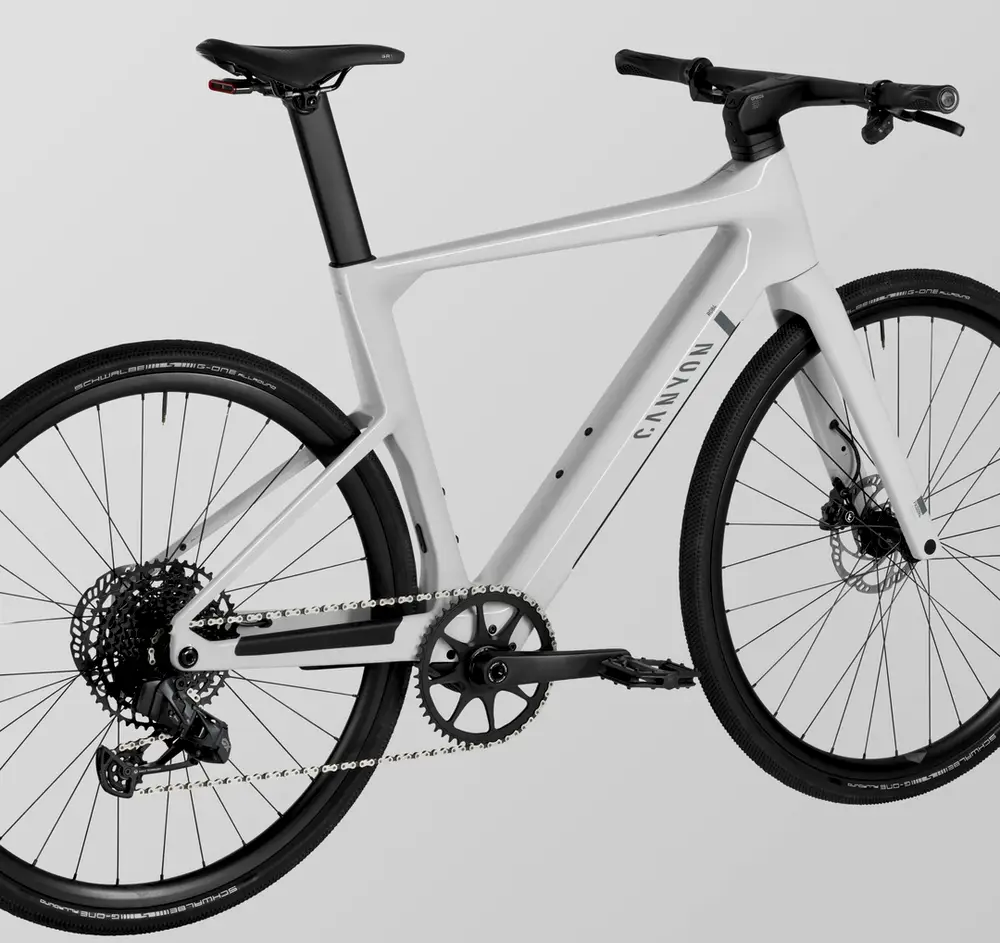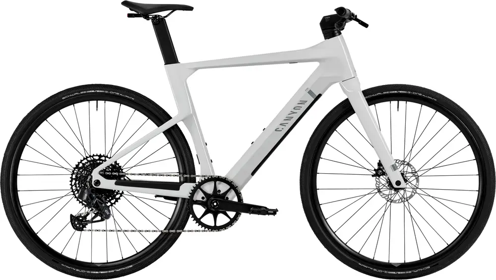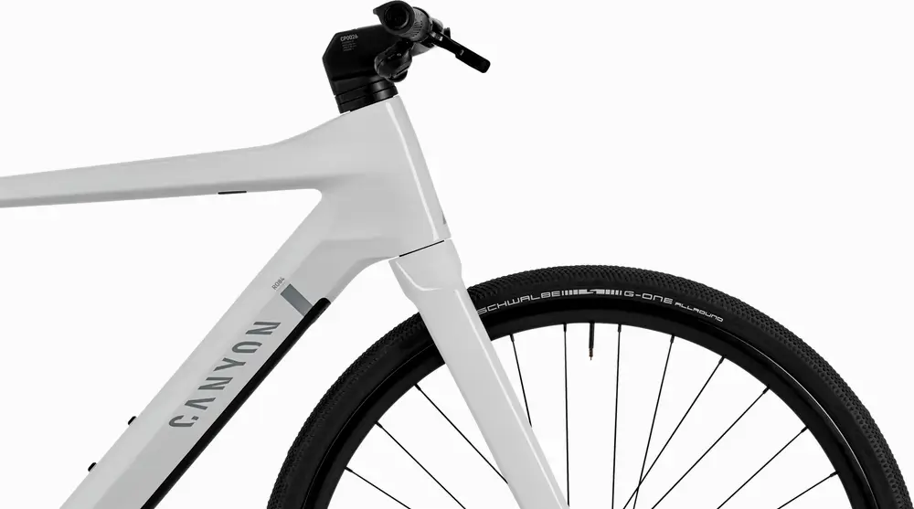 Canyon Roadlite:ON CF, A sleek e-hybrid frame combining Canyon’s signature minimalist design with impressive e-bike power., Axle dimension: 12×142 mm, Tyre clearance: 40 mm, Material: Carbon (CF), Weight: 1,595 g, Tire Clearance: 40c, Colors: Light Grey; Stealth1379_85e6ee-94> |