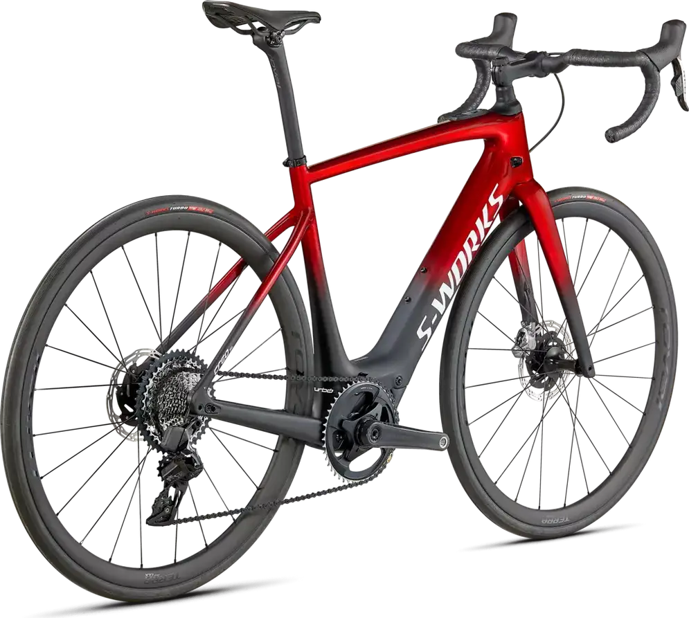 Rower elektryczny endurance z karbonową ramą, komponentami najwyższej klasy i hydraulicznymi hamulcami tarczowymi SRAM Rival.
