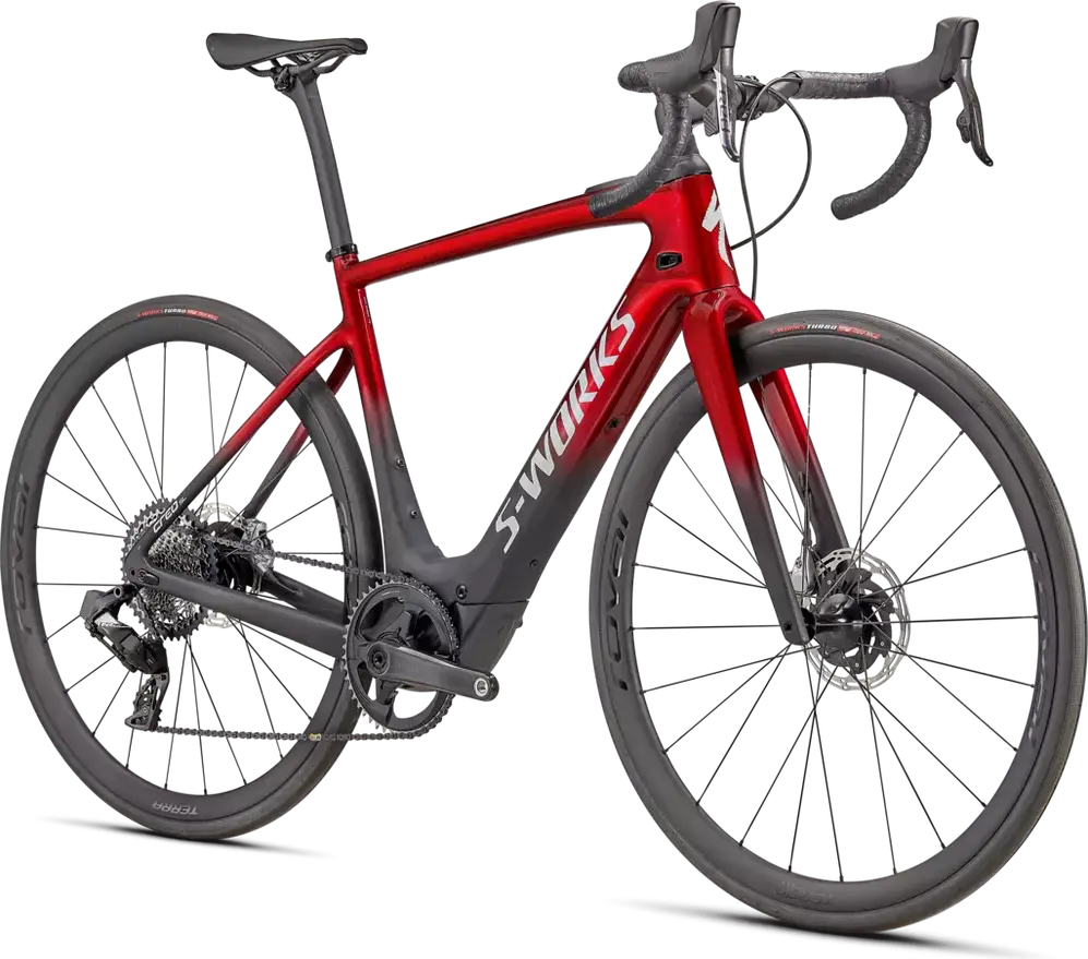 Rower elektryczny endurance z karbonową ramą, komponentami najwyższej klasy i hydraulicznymi hamulcami tarczowymi SRAM Rival.