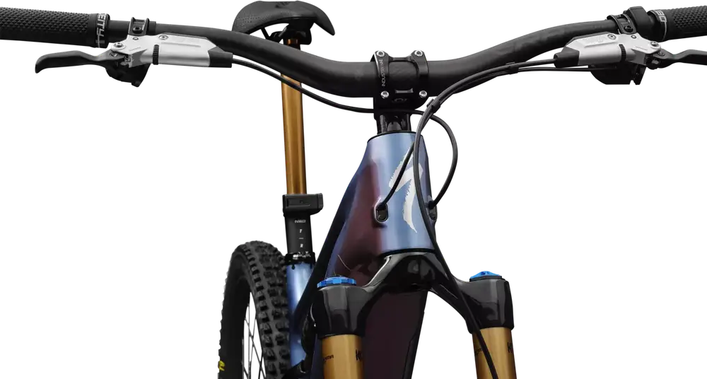 Rower elektryczny enduro z pełnym zawieszeniem 29″/27,5″ z karbonową ramą i komponentami najwyższej klasy.