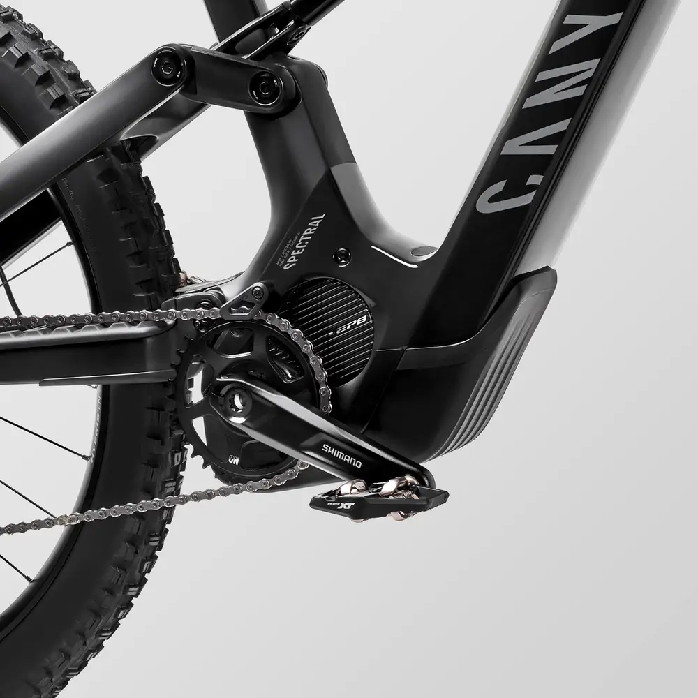 Canyon Spectral:ON CF, A progressive, playful full-carbon trail e-MTB engineered to eat up more trail in less time., Axle dimension: 12×148 mm, Material: Carbon (CF), Weight: 7.93 lbs, BB Standard: STEPS, Press Fit, Colors: Stealth; Hint of Lime1379_85e6ee-94> |