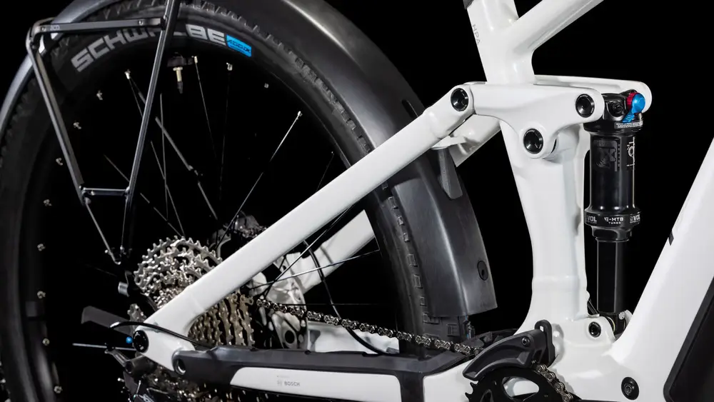 Aluminum Superlite, Gravity Casting Technology, Efficient Comfort Control, FSP 4-Link, Agile Comfort Geometry, Boost 148, UDH™, Full Integrated Battery, Advanced Internal Cable Routing, Kickstand/Fender/Carrier Mounting Points, Integrated Seatclamp, Hanger Standard: UDH, Color: Whitemarble’n’black
