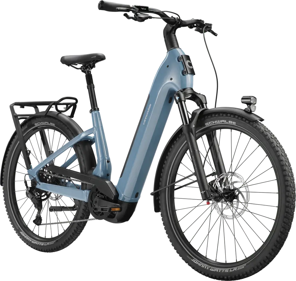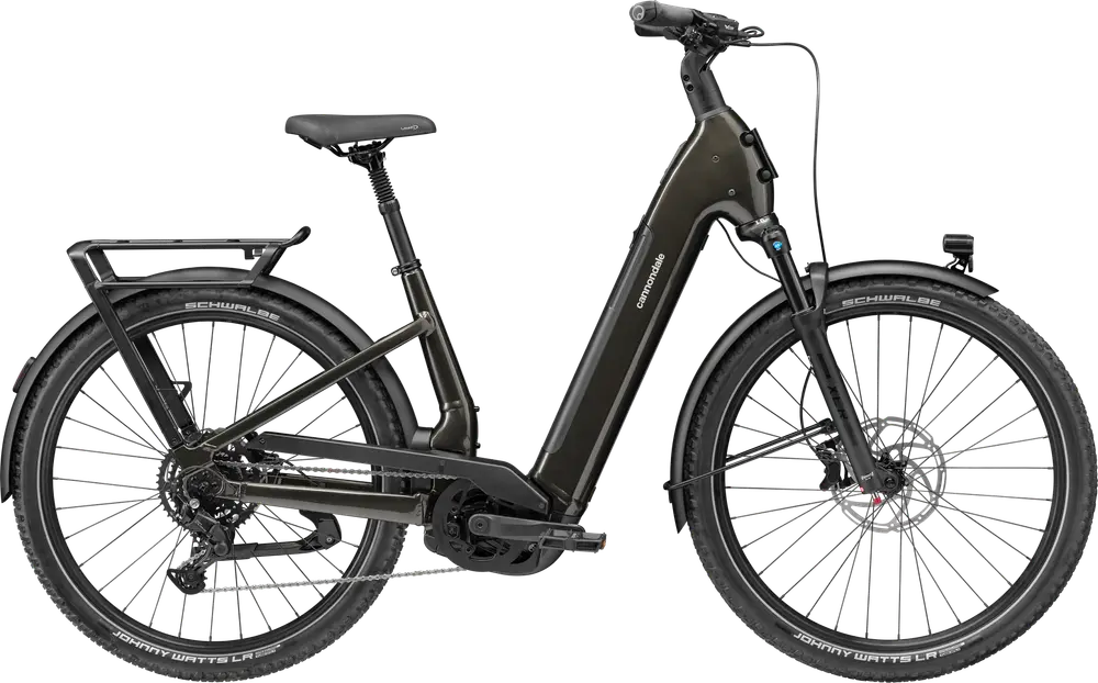Tesoro, low step-thru, SmartForm C1 Alloy, removable 600Wh downtube battery, tapered headtube, internal cable routing, 135mm QR hub spacing, post mount disc brake, motor protection, integrated RackLock rack and fender – RackTime SnapIt 2.0 and child seat compatible, BB Standard: Bosch, Press Fit, Colors: Storm Cloud; Obsidian