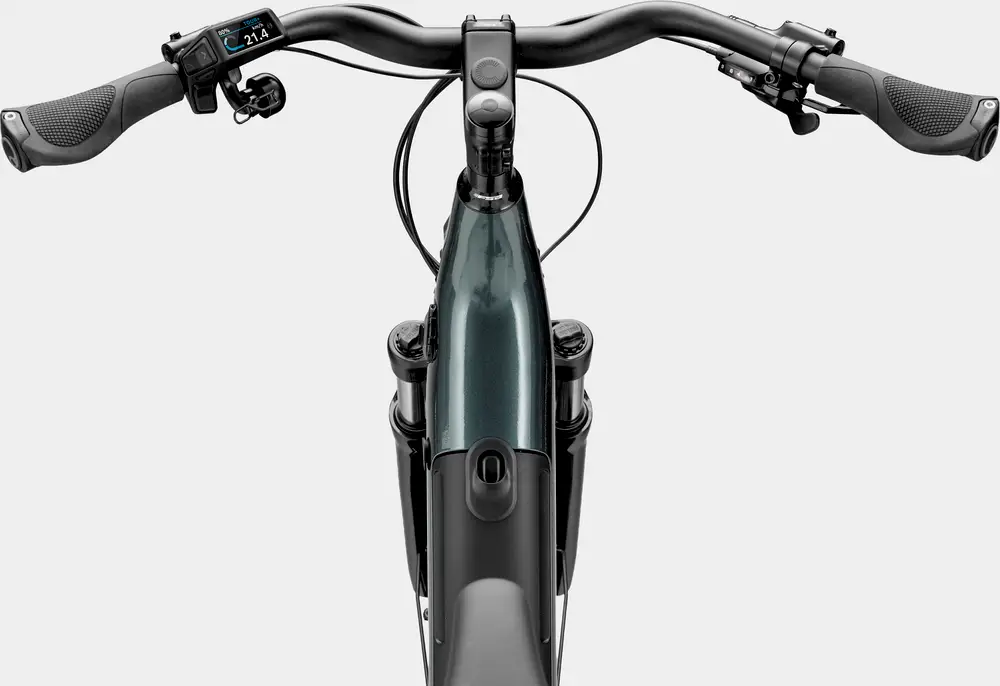 Tesoro Low Step-Thru, SmartForm C2 Alloy, removable 625Wh downtube battery, integrated headtube reflector, tapered headtube, internal cable routing, 135mm QR hub spacing, IS disc mount, motor protection, BB Standard: Bosch, Press Fit, Color: Gunmetal Green1379_85e6ee-94> |