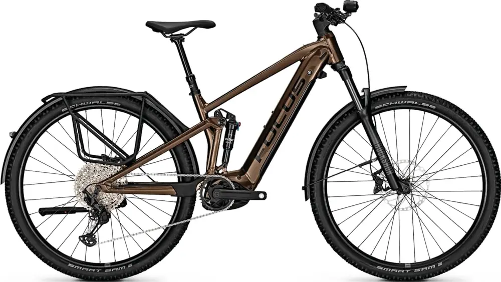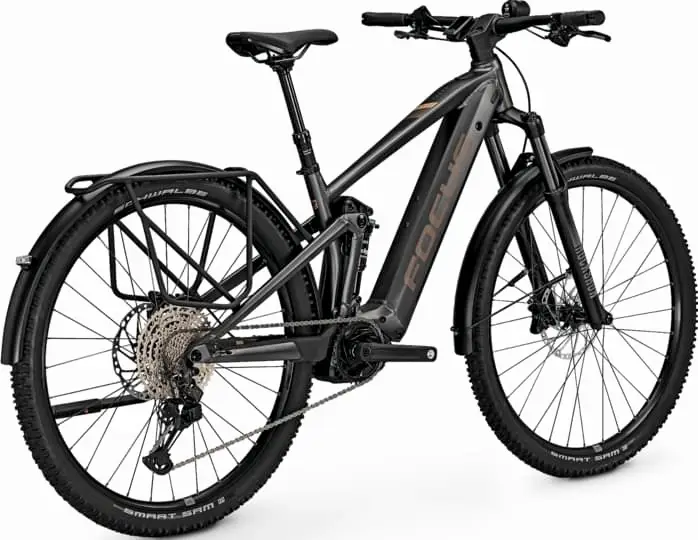 Rower elektryczny trail z pełnym zawieszeniem, aluminiową ramą 29″ i osprzętem wyższej średniej półki.