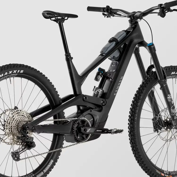 Opcja Baterii 900 Wh: Canyon oferuje jeden z największych akumulatorów na rynku, co pozwala na cały dzień szaleństwa w bikeparku bez martwienia się o prąd, nawet przy tak dużym skoku i masie.