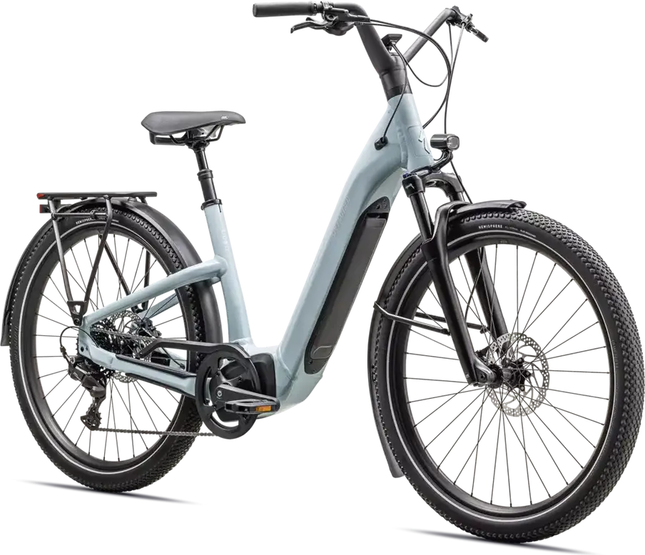 E5 Aluminum, bottom bracket motor mount, fully integrated & lockable downtube battery, internal cable routing, lock and front rack mount, Colors: Gloss Seafoam / Silver Dust Reflective; Gloss Cast Black / Satin Silver Reflective; Sand / Black Reflective1379_85e6ee-94> |