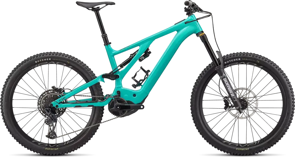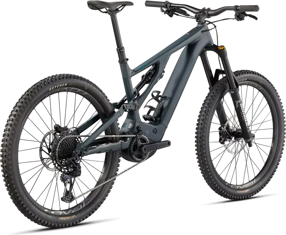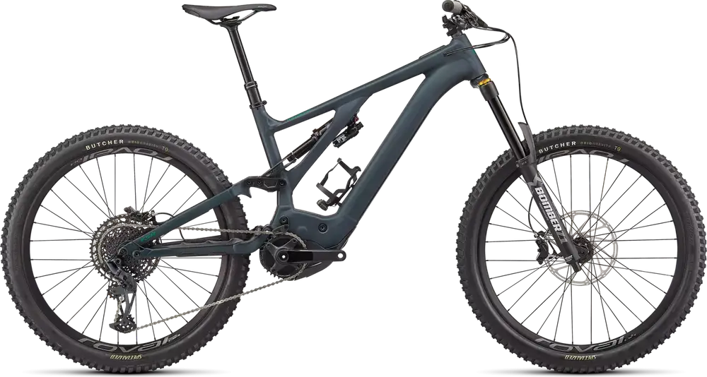 Specialized M5 Premium Aluminum, 27.5 Trail Geometry, integrated down tube battery, enclosed internal cable, Command Post routing, 148mm spacing, fully sealed cartridge bearings, 180mm of travel, Hanger Standard: UDH, Colors: Satin Forest Green / Pine Green; Gloss Lagoon Blue / Black1379_85e6ee-94> |