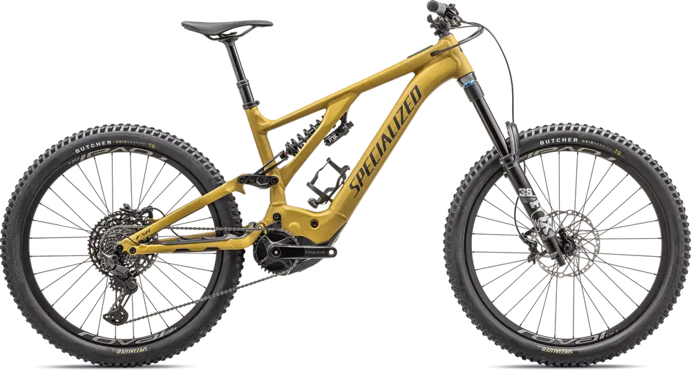 Specialized M5 Premium Aluminum, 27.5 Trail Geometry, integrated down tube battery, enclosed internal cable, Command Post routing, 148mm spacing, fully sealed cartridge bearings, 180mm of travel, Hanger Standard: UDH, Colors: Gloss Dark Moss Green / Oak Green; Satin Harvest Gold / Obsidian1379_85e6ee-94> |