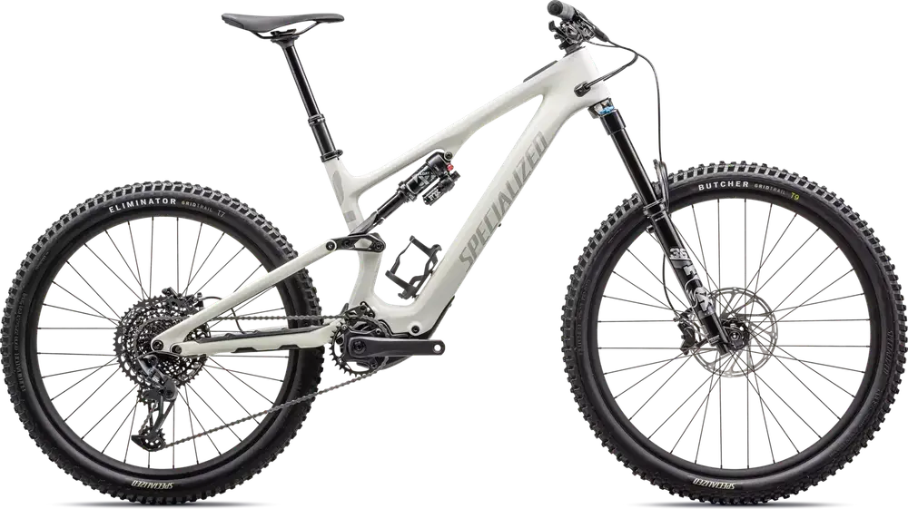 All new Levo SL carbon Frame, Fact 11m carbon, alloy shock extension, 150mm travel, adjustable head angle, BB height, and compatible with 27.5 or 29″ wheels., Hanger Standard: UDH, Colors: Gloss Birch / White Mountains; Satin Sulfur / Obsidian
