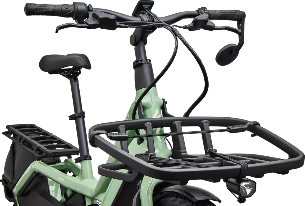 Rower elektryczny cargo typu long tail 24″/20″ z aluminiową ramą, komponentami wysokiej klasy i hydraulicznymi hamulcami tarczowymi Tektro Dorado.