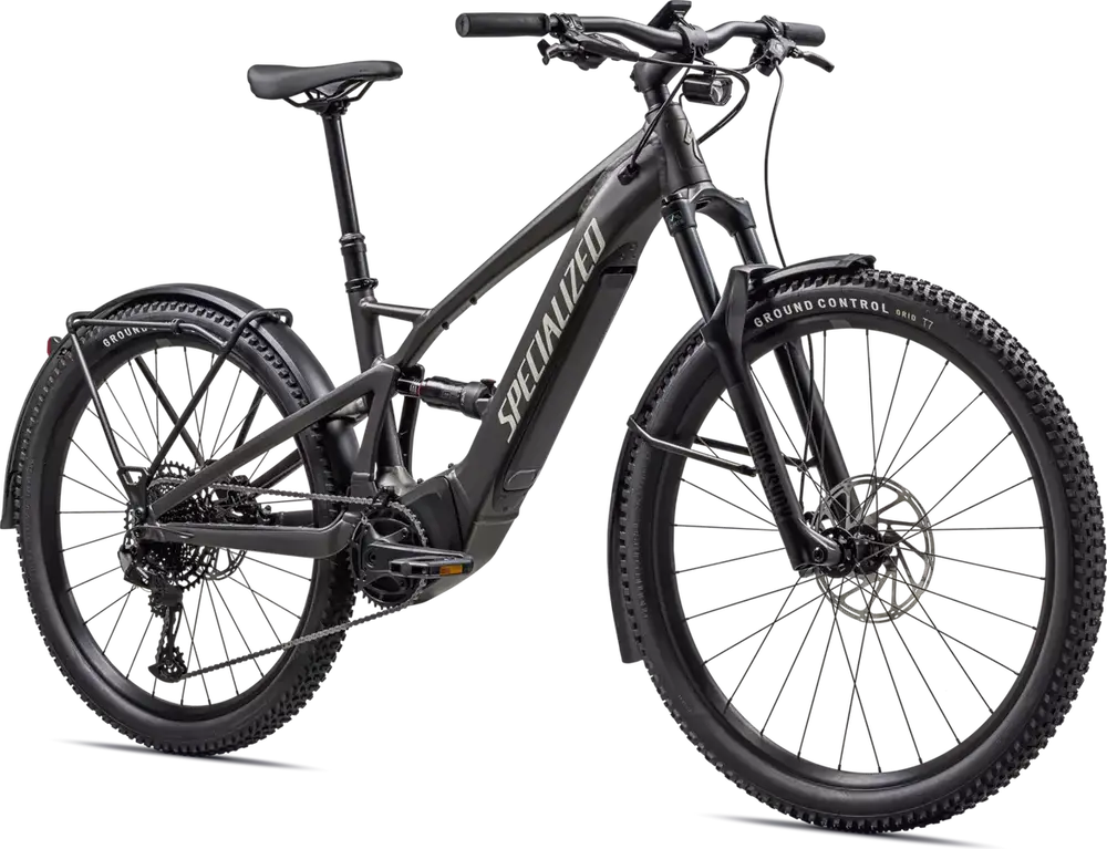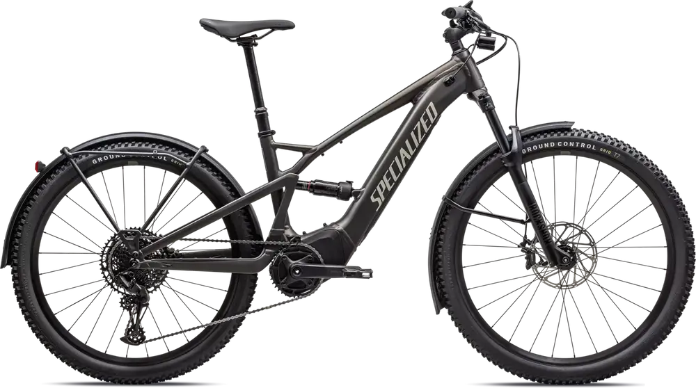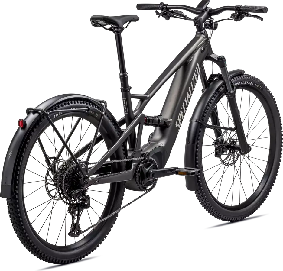 E5 Aluminum, full suspension, mullet style for M-XL, bottom bracket motor mount, fully integrated & lockable downtube battery, internal cable routing, lock and front rack mount, Colors: Gunmetal / White Mountains; Silver Dust / Smoke; Gloss Cast Lilac / Seafoam; Gloss Metallic Deep Lake / Silver Dust1379_85e6ee-94> |