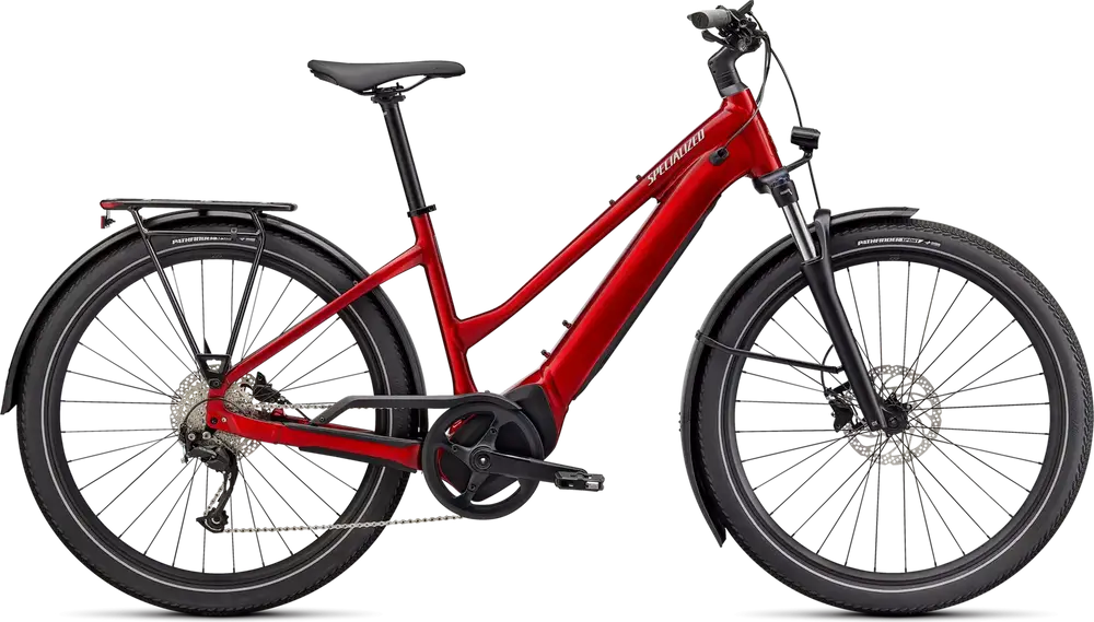 E5 Aluminum, bottom bracket motor mount, fully integrated & lockable downtube battery, internal cable routing, lock and front rack mount, Colors: Cast Black / Silver Reflective; White Mountains / Black Reflecitve; Red Tint / Silver Reflective1379_85e6ee-94> |