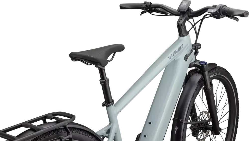 E5 Aluminum, bottom bracket motor mount, fully integrated &lockable downtube battery, internal cable routing, lock and front rack mount, sliding dropout, Colors: Satin Seafoam / Lapis Pearl / Glacial Metallic; Gloss Cast Black / Satin Silver Reflective1379_85e6ee-94> |