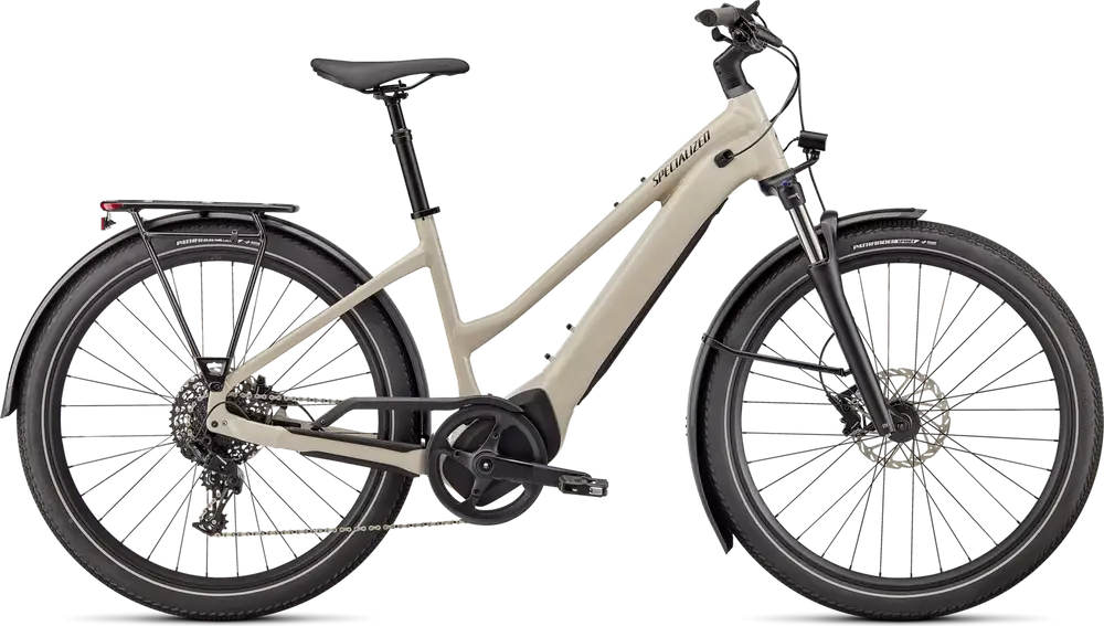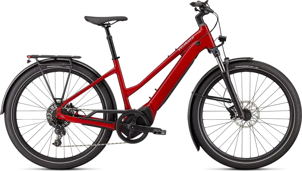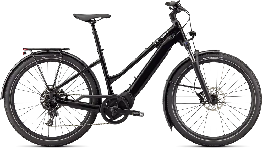 E5 Aluminum, bottom bracket motor mount, fully integrated & lockable downtube battery, internal cable routing, lock and front rack mount, Colors: Cast Black / Silver Reflective; Red Tint / Silver Reflective; White Mountains / Black Reflecitve1379_85e6ee-94> |